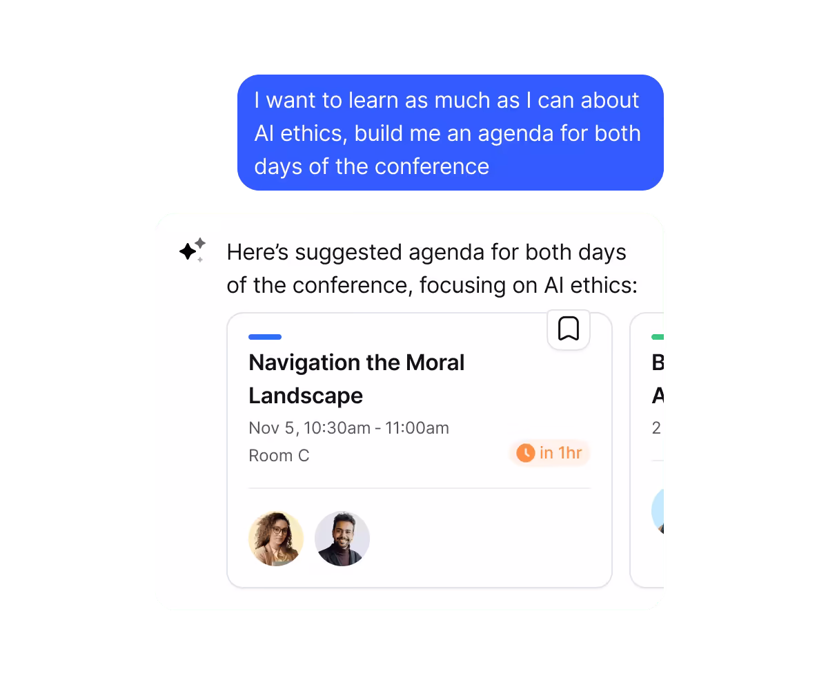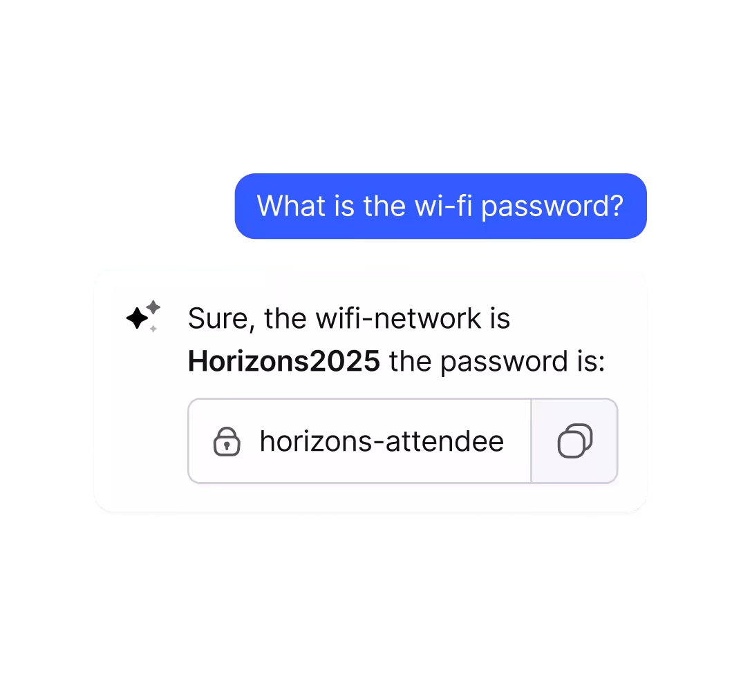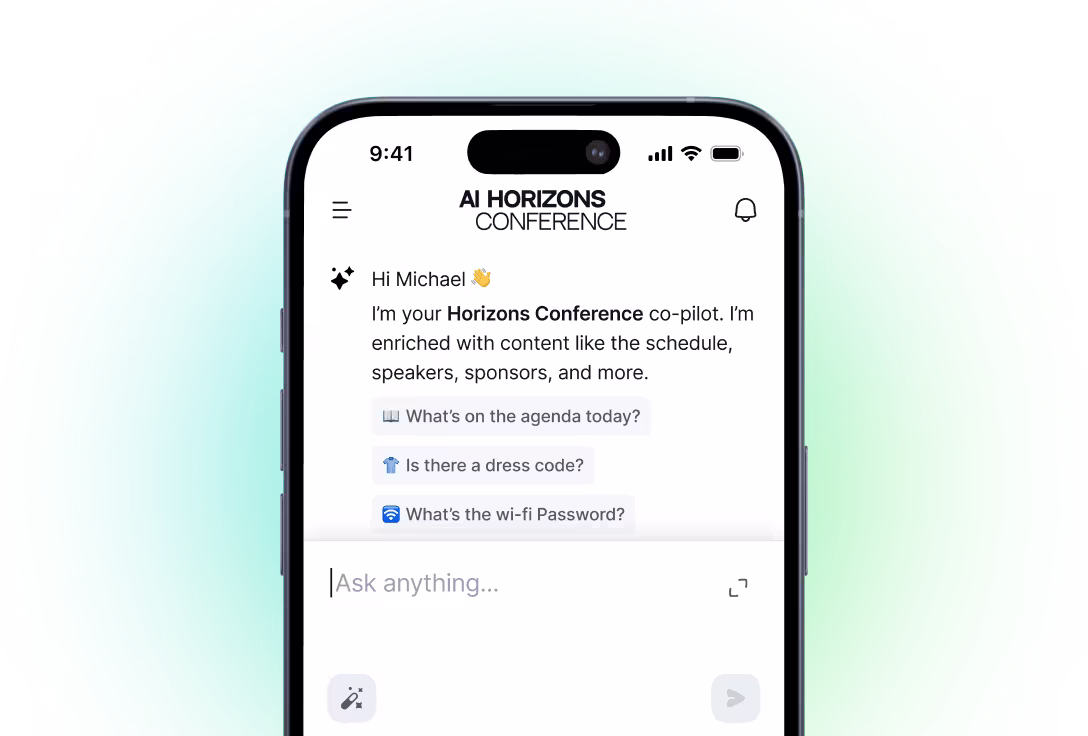 AI Co-Pilot understands natural language questions, interprets intent, and replies with accurate, contextual answers, right inside your event app.